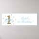 Bannière de fête d'anniversaire des garçons Bleu & Or UN 1er. Personnalisez avec n'importe quel texte.