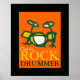 Le meilleur tirage cool de batteur de rock pour décorer les murs de salle des musiciens - la couleur arrière - plan orange peut être changée ("personnaliser le bouton")