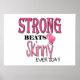 Cette affiche présente un design de texte rose amusant : 'STRONG BEATS Skinny daily' avec des gants de boxe rose qui disent 'I kick' sur leur bracelet. Forte est rose vif et maigre est haute et mince avec la couleur rose pâle. Un cadeau parfait pour les femmes et les filles qui travaillent dur pour rester en bonne santé et en forme, pas seulement maigre. Conçu par Gloves On. Image158