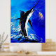 Reproduit de l'oeuvre d'art originale de l'artiste Karen Foley www.karenfoleyartist.com Black Marlin frappant un leurre