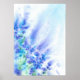 Poster imprimé abstrait de fleurs en bleu, violet, vert et blanc, de l'aquarelle d'origine.
