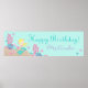 Douce petite sirène sous la mer avec des poissons, des coquillages, l'anémone, et bannière d'anniversaire des récifs coralliens.