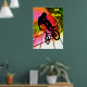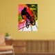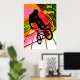 L'action sportive et l'énergie des athlètes BMX sont capturées dans des silhouettes de figures d'action démontrant des tours extrêmes et des cascades sur leurs vélos. Les peintures numériques et les illustrations de ces ados et jeunes hommes comprennent des arrière - plans de couleurs vives et vives, des éclaboussures et des éclats de lumière pour souligner l'action. Ils se produisent aussi dans des scènes de rue grincheuses et pointues où les enfants gagnent leurs cris de rue montrant leurs compétences en vélo.