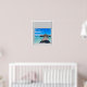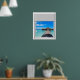 Belle promenade de mer tropicale, fausse scène de fenêtre, pour une salle de bain sans fenêtre ou mur de bureau. Illusion d'optique réaliste et amusante affiche pittoresque pour un bureau ou un mur d'étude.