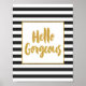 Belle phrase de script de brush de typographie moderne et tendance. "Bonjour magnifique". Doté d'un joli cadre de parties scintillant métallique doré et de lettres d'or à rayures noires et blanches.