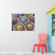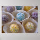 Un grand poster avec des boules de gâteau colorées en jaune, bleu et lavande avec des arroses. Idéal pour une boulangerie, un restaurant, un café ect.