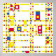 Une interprétation numérique de la composition de Piet Mondrian en 1943. Cela diffère en ce qu'il adhère rigidement à une grille fixe qui ne figure pas dans l'original.