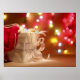 Affiches Cadeau de Noël blanc enveloppé dans sac rouge
