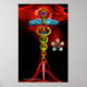 AFFICHES CADUCÉE D'OR ET 7 CHAKRAS DANS ROSE FRACTALE ROUGE