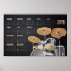 Cette affiche présente un calendrier 2016 avec un graphique vectoriel d'une batterie sur fond noir.