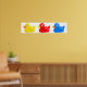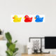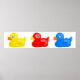 Belle illustration de trois canards colorés différents flottant ensemble en rang. Image disponible sur divers cadeaux et produits.