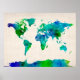 Une carte du monde colorée à l'aquarelle avec les frontières du pays.