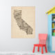 Une carte de la Californie réalisée à partir d'un collage de vieilles et vintages partitions sur un arrière - plan de style antique.