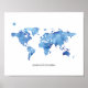 Affiches Carte du monde bleue d'exploration continue - Impr