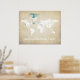 Citation d'art inspirant en crème, brun turquoise et rustique/beige avec carte du monde, citations d'aventure inspirante d'Amelia Aerhart et montgolfière vintage.