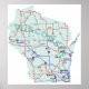 Carte de l'inter-état du Wisconsin avec les autoroutes, routes d'état et noms de villes des États-Unis.