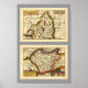 Affiches Cartes du comté de Northumberland et Leicestershir