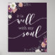 Typographie Design avec calligraphie et mots en blanc sur violet foncé arrière - plan, "It is Well with my Soul." Le design typographique est centré sur de belles fleurs d'aquarelle colorées (des fleurs illustratives colorées apparaissent dans les coins supérieur gauche et inférieur droit du design).