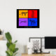 Achetez cette affiche de guépards aux couleurs orange, rouge, violet et bleu.