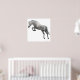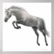 Tableau d'art original d'un cheval gris applaudi sautant par l'artiste équine et designer Carolyn McFann imprimé sur une affiche de qualité pour les amateurs de chevaux.