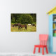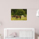 Cette affiche présente des chevaux bruns et blancs broutant dans la haute herbe d'un champ doré par une chaude journée d'été.