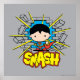Regardez Chibi Superman percuter son chemin à travers un mur de briques avec un gros "SMASH"!