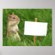 petit chipmunk est debout avec une enseigne vide - ajoutez votre propre message ! Entièrement personnalisable !