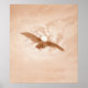 Magnifique imprimé vintage de la sépia de 1837 sur un croquis au crayon de Caspar David Friedrich appelé Owl Flying against a Moonlit Sky.