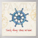 Un design d'aquarelle nautique mignon avec une phrase de texte de roue et de script du capitaine.
