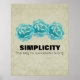 Une affiche avec une citation inspirante qui dit : La simplicité est la clé du succès. Illustré avec des roses turquoises d'aquarelle sur un motif damassé tan passé.