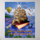 Cette belle affiche originale de l'imaginaire est basée sur le poème Emily Dickinson qui commence, "Il n'y a pas de frégate comme un livre pour nous emmener des terres." La citation apparaît en bas, sous un voilier masqué fait d'un livre antique. Les mots du poème sont gribouillés partout. Ils sont déchirés en regardant les voiles, ils entourent le ballon au loin, et ils décorent les ailes d'une libellule qui a un corps de crayon. Ils apparaissent même faiblement sur l'arc-en-ciel défraîchi. Pendant ce temps, les mouettes volent tandis qu'un orque et un calmar pourpre entourent le navire à livre. C'est une jolie scène surréaliste pour n'importe quel amateur de livres, lecteur passionné, écrivain, professeur d'anglais, bibliothécaire ou propriétaire de librairie. Remarque : Cette conception est protégée par le droit d'auteur. Merci!