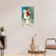 Une affiche de Noël vintage, charmante, avec un bonhomme de neige et une fille d'ange, peinte par l'illustratrice américaine et artiste commerciale Ellen Hattie Clapsaddle.