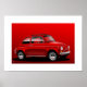 Affiche illustrant l'emblématique petite voiture italienne, la Fiat 500. Fini en rouge avec les pare-chocs chromés et les surcavaliers. Conçu et illustré par moi-même. C'est un excellent article pour n'importe quel propriétaire ou fan de 500 !