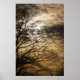 A winter tree is silhouetted against a cloudy sunset creating a mystical scene.