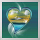 À l'intérieur d'un beau coeur de whisky fleuri est mon Alien Sunrise design. Un double lever de soleil sur l'océan et un ciel jaune et orange vif avec des nuages blancs moelleux. L'océan a des couleurs vert foncé, bleu foncé, bleu clair et turquoise.
