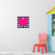Forme de coeur rose profond contre un motif en zigzag ou en chevron noir et blanc.
