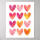 Affiches Coeurs d'aquarelle rose et orange imprimé