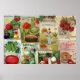 Ce collage de couvertures vintages de catalogue de fruits et légumes vous comblera de nostalgie pour le bon vieux temps. Les paquets colorés de graines montrent une variété de fruits et légumes comme les framboises, les melons, les tomates patrimoniales, le maïs sur le berceau, les pastèques, les pois verts, le chou, les oignons, le céleri, les betteraves, le chou-fleur, et bien plus encore. Chaque illustration pittoresque est en couleur et provient du début des années 1900.