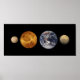 Tailles planétaires Voici, présenté en belle comparaison, Mercure, Vénus, Terre et Mars sont présentés en référence à leur taille. Non seulement cette image est étonnante, mais elle nous rappelle aussi de façon incroyable notre fragile place dans le système solaire.