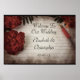 Un poster "Bienvenue à notre mariage" avec une photo sur le thème des fleurs automnales. Avec du papier à lettres délavé et ligné et un stylo posé dessus avec de jolies fleurs rouges et des feuilles vertes placées autour des bords. Un design de mariage à personnaliser avec le nom de la mariée et du marié et leur date de mariage.