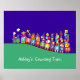 Illustration adorable du train. Chaque voiture est emballée avec un nombre différent d'articles colorés, de 1 à 10. Remplacez le texte de l'espace réservé par le texte à personnaliser.