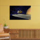Taille recommandée : 52x35 pouces (taille originale : 48x32 pouces à 300 PPI, 138 MP). Beaucoup d'autres tailles disponibles. Cliquez sur "Customisez-le !" à droite. Il s'agit d'un concept artistique de Cassini pendant la manoeuvre de Saturn Orbit Insertion (SOI), juste après que le moteur principal a commencé à tirer. L'engin spatial se déplace du plan de la page et à droite (tirant pour réduire sa vitesse d'engin spatial par rapport à Saturne) et vient de traverser le plan circulaire. La manoeuvre de l'IES, qui dure environ 90 minutes, permettra à Cassini d'être capturé par la gravité de Saturne dans une orbite de cinq mois. La proximité de Cassini avec la planète après la manoeuvre offre une occasion unique d'observer Saturne et ses anneaux à très haute résolution. Crédit : NASA/JPL
