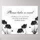 Affiche pour votre service funéraire avec pour votre table avec des cartes où vous pouvez écrire vos souvenirs préférés à partager. L'affiche présente des coquelicots noirs.