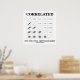 Faites faire à d'autres une double prise avec une dose de style psychologique circonspect avec cette affiche présentant un tableau de corrélation avec diverses corrélations et leurs coefficients de corrélation ainsi que le dicton "Corrélé mais seulement à un certain degré". Pas besoin d'être statisticien pour en profiter !