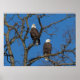 Un couple d'aigles à tête blanche adultes perché dans un arbre avec un ciel bleu vif en arrière-plan.