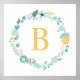 Affiches Couronne florale monogrammée Aqua et Jaune