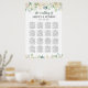 Le design élégant de l'affiche du tableau de sièges mariage comprend un monogramme des noms des mariées et des mariées et de la date du mariage, du texte modèle personnalisé pour les numéros de table et les noms des invités. Comprend un élégant design de bordure en aquarelle fleurie avec des roses peints, des fleurs de ranunculus et des feuilles. Le jeu de couleurs comprend des tons neutres de blanc, crème, or, vert et gris foncé / noir doux. Parfait pour un événement de printemps ou d'été.
