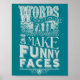 Un design typographique qui permet à chacun de savoir que les mots ne sont pas toujours votre façon préférée de communiquer. "Les mots me manquent parfois. Quand cela arrive, je fais des visages drôles." Choisissez votre couleur arrière - plan préférée !