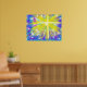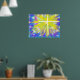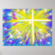 Art à l'aquarelle moderne de croix de résurrection abstraite de Pâques. Cette conception de croix lumineuse et vibrante célèbre la résurrection de Jésus. La croix jaune doré crée une explosion d'étoiles vibrante de couleurs vives sur un fond bleu, violet et mauve. Œuvre d'art originale contemporaine religieuse chrétienne par l'artiste Catherine Sweetman