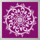 Ce mandala blanc est assis sur un arrière - plan violet chaud. La couleur est luxueuse et créative. Partie de la collection Payon Mandala.